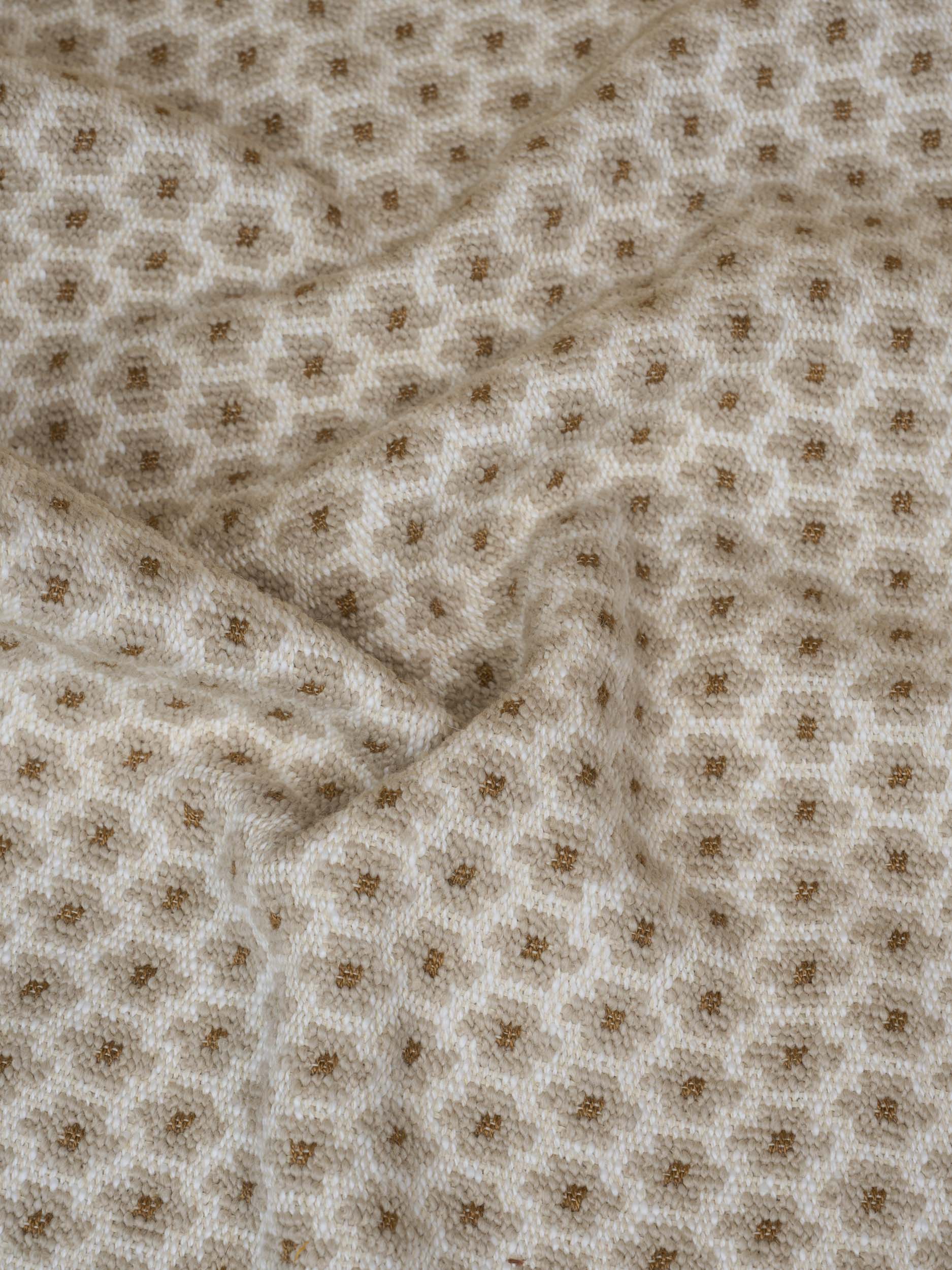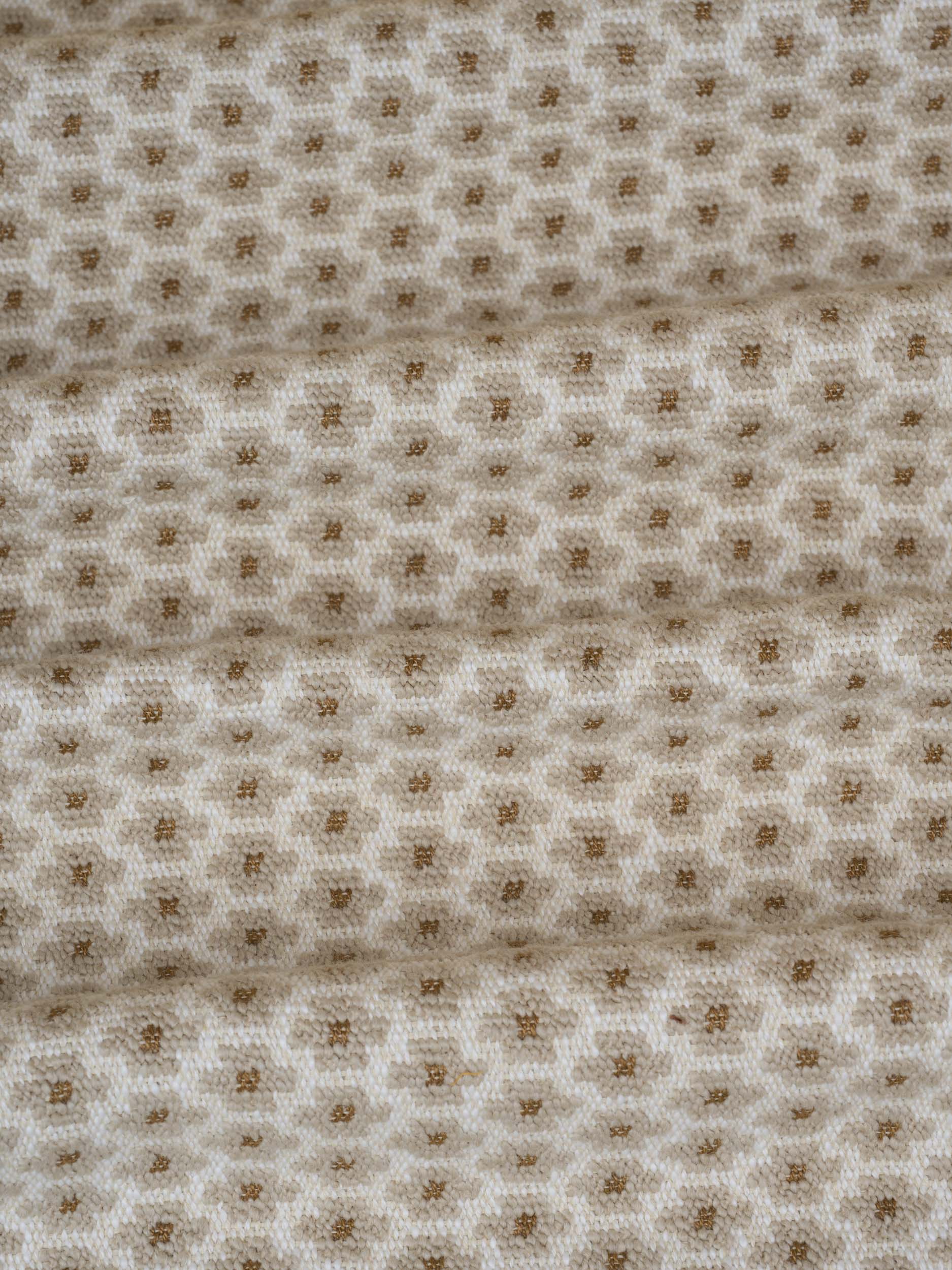 The Italian word “FIORE” means “flower,” and this fabric’s name is derived from the small geometric pattern that resembles a stylized flower. Charming and dynamic thanks to the simplicity of its pattern, the attraction of this fabric lies in the contrasts it contains: a cotton ground, the relief of the rustic wool yarn used for the “petals,” and a slightly shiny linen and viscose yarn that adds a distinctive central dot. This jacquard-woven fabric is perfect for medium-intense upholstery applications.