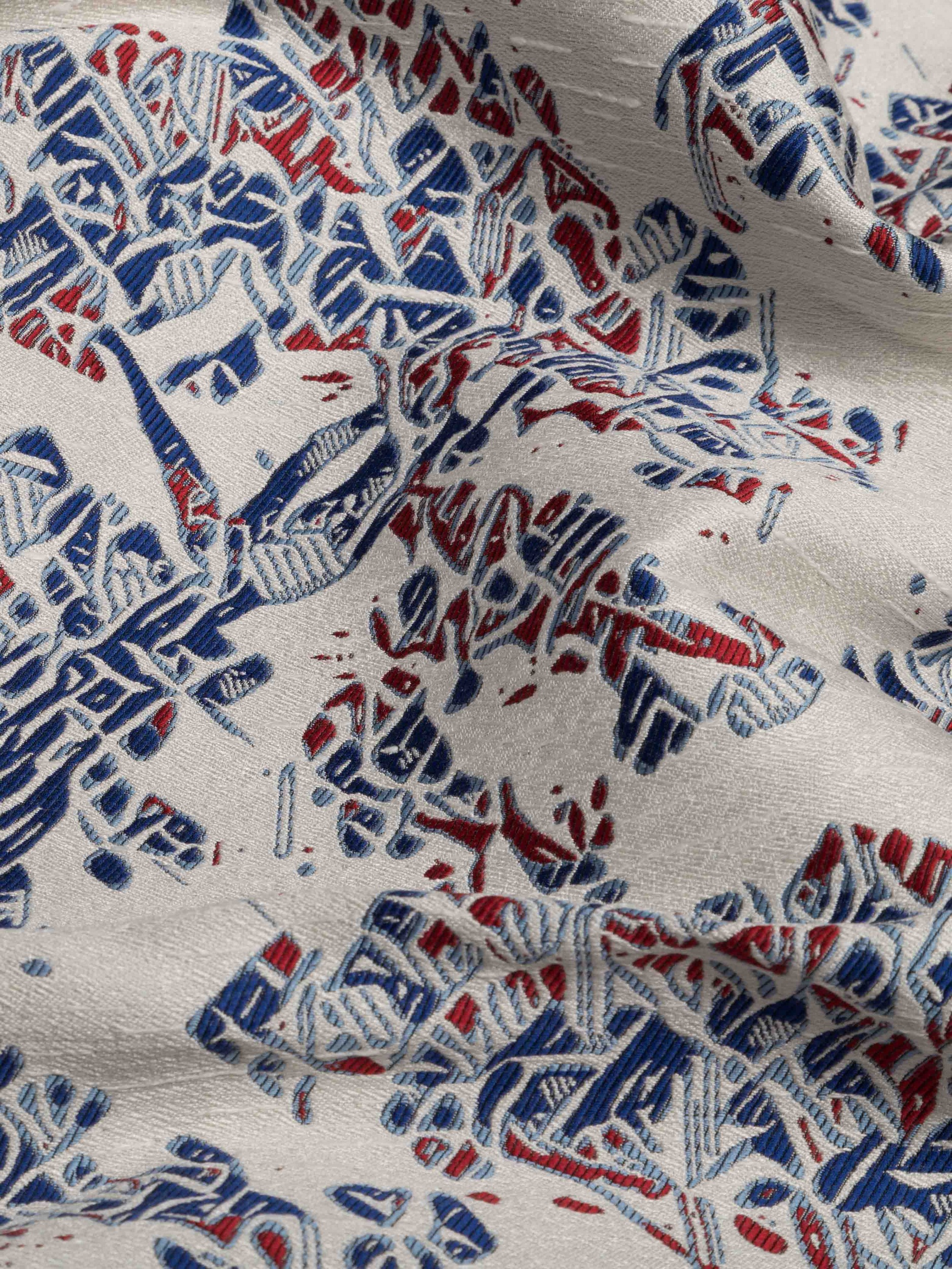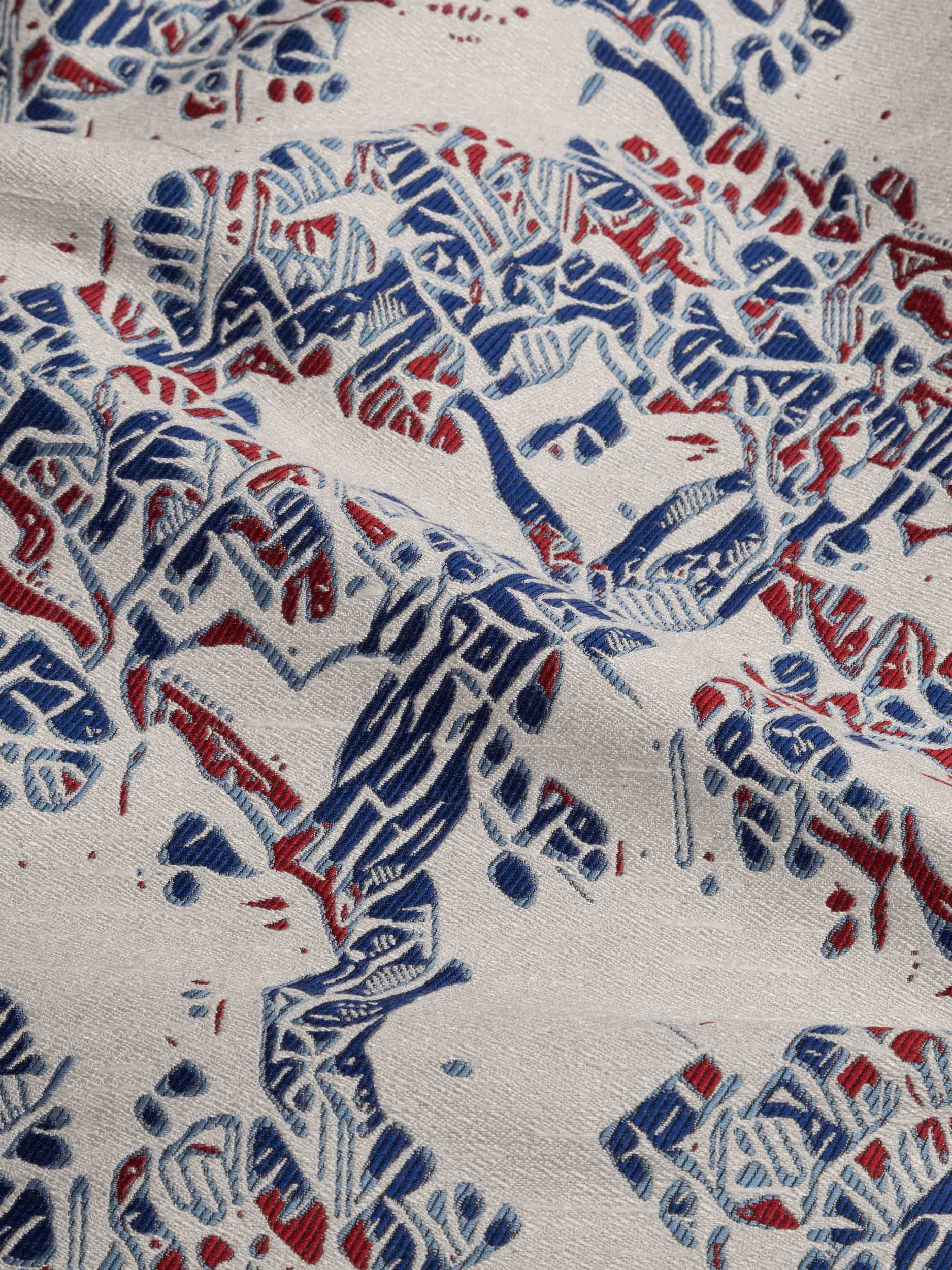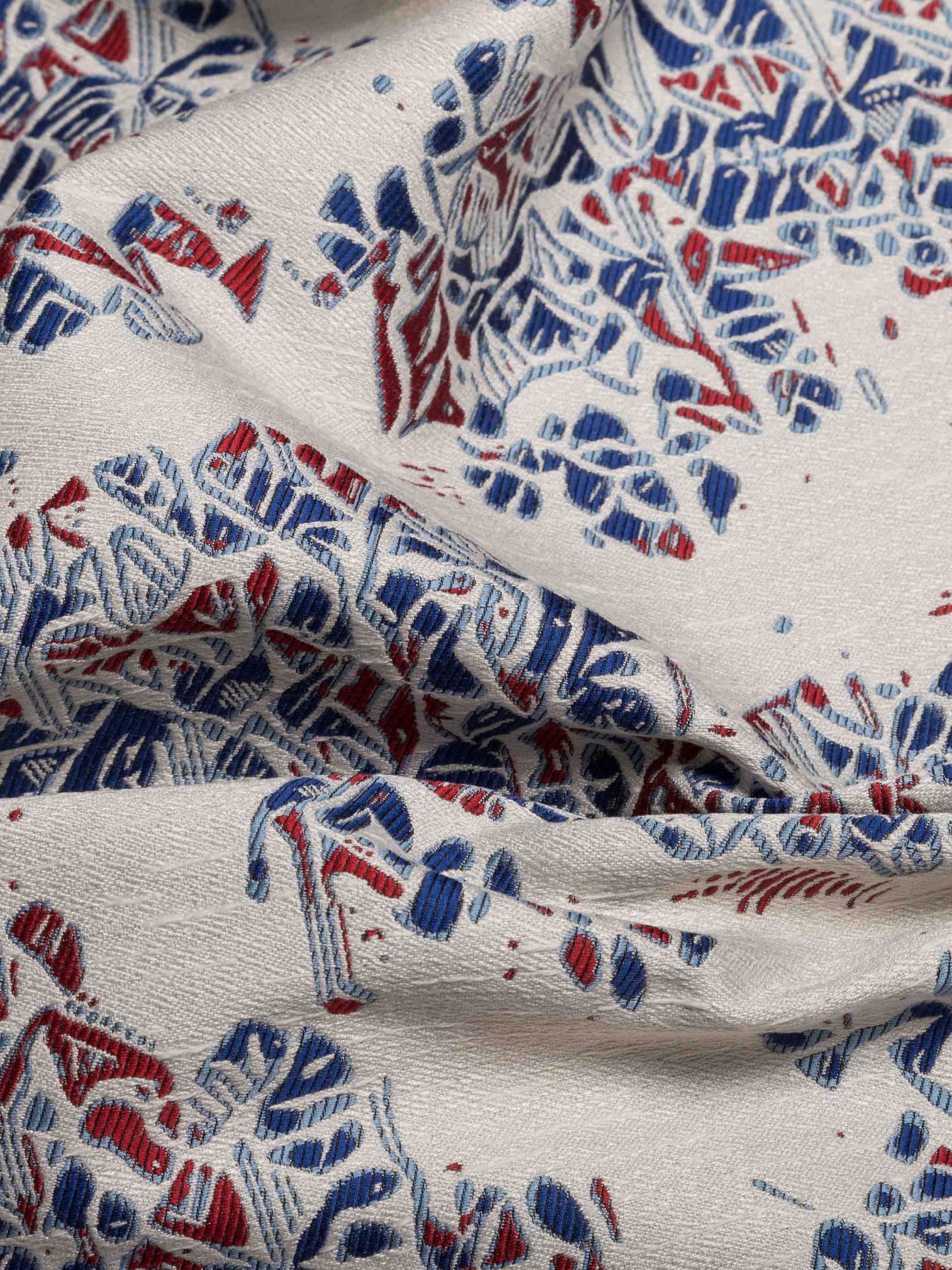 A refined jacquard with a particular design that recalls a classic Tolie de Jouy revisited in a modern key. A rich and harmonious weave and the use of particular textures with bright colors describes this harmonious Japanese landscape.
