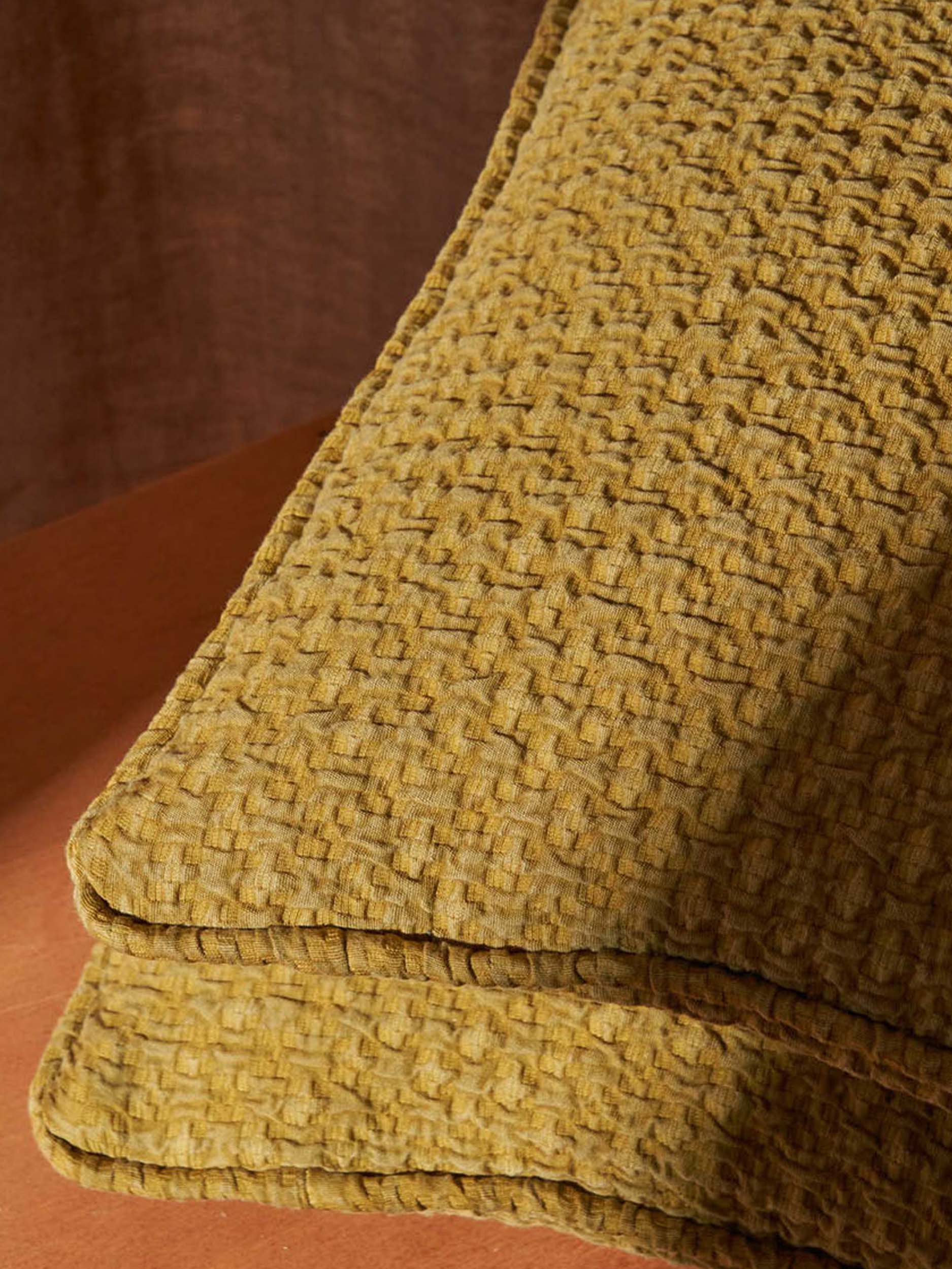 This quilted fabric, marked by the preciousness of the matelassé pocket-weave technique and featuring a detailed padded effect, is enhanced by a captivating jacquard woven design that evokes a basketweave-like texture and the textile of the fashion and apparel world. Pepe provides a modern and urban interpretation, expressed in vivid colors and is well-suitedfor medium-intensive upholstery and decorative uses. This versatile fabric can be utilized in either direction, allowing it to accommodate larger furniture pieces without width restrictions.