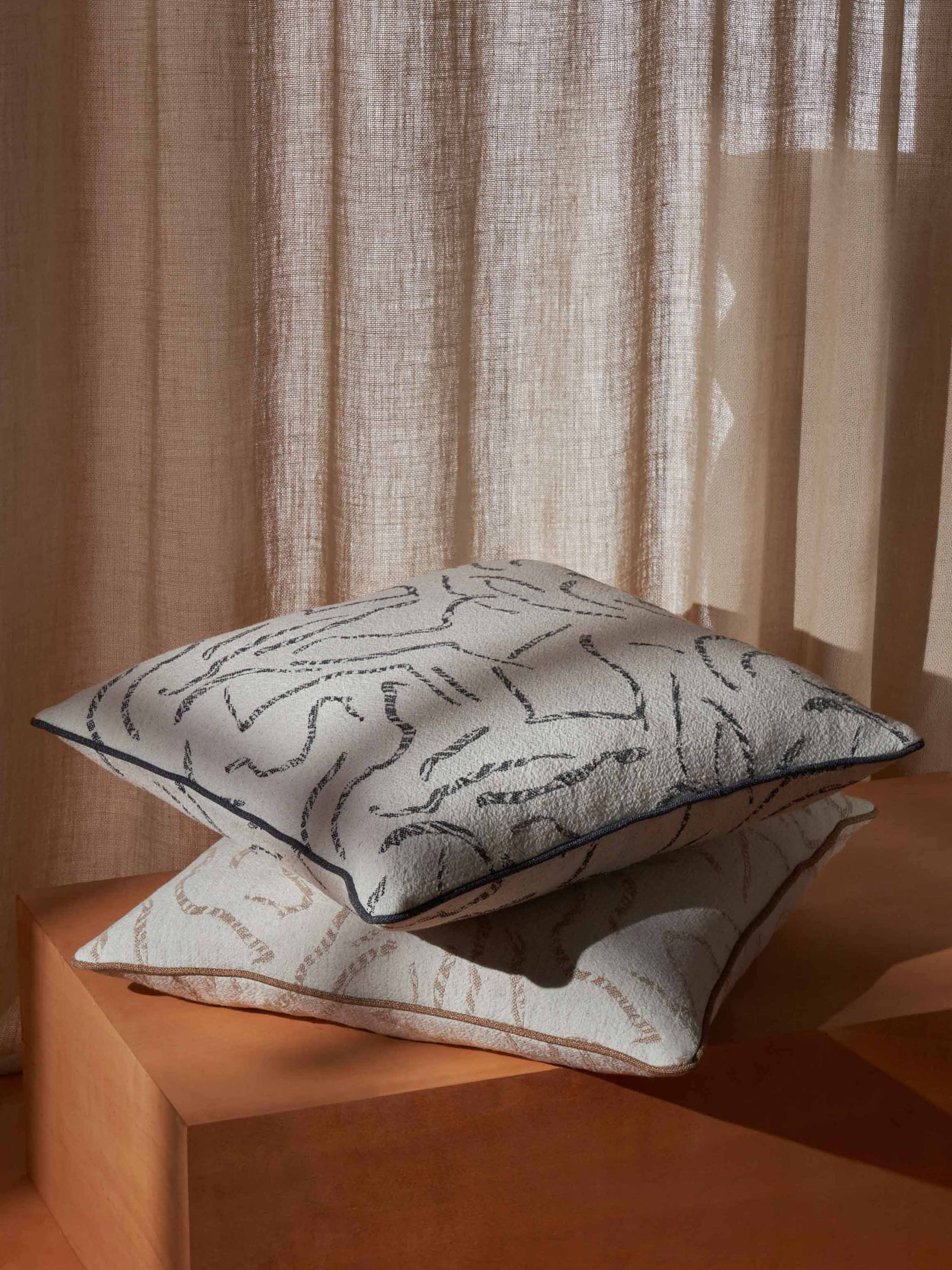Casual and spontaneous, the lines and visual traits of this jacquard-woven fabric’s pattern are infused with vibrant life. A textured motif featuring a soft chenille weft contrasts beautifully with the coarser irregular ground that creates a subtle play of light and matte effects. Presented in natural colors and earthy tones with a vintage feel, this fabric is perfect for medium-intensity upholstery applications while also being suitable for heavy drapery due to its soft and elegant flow.