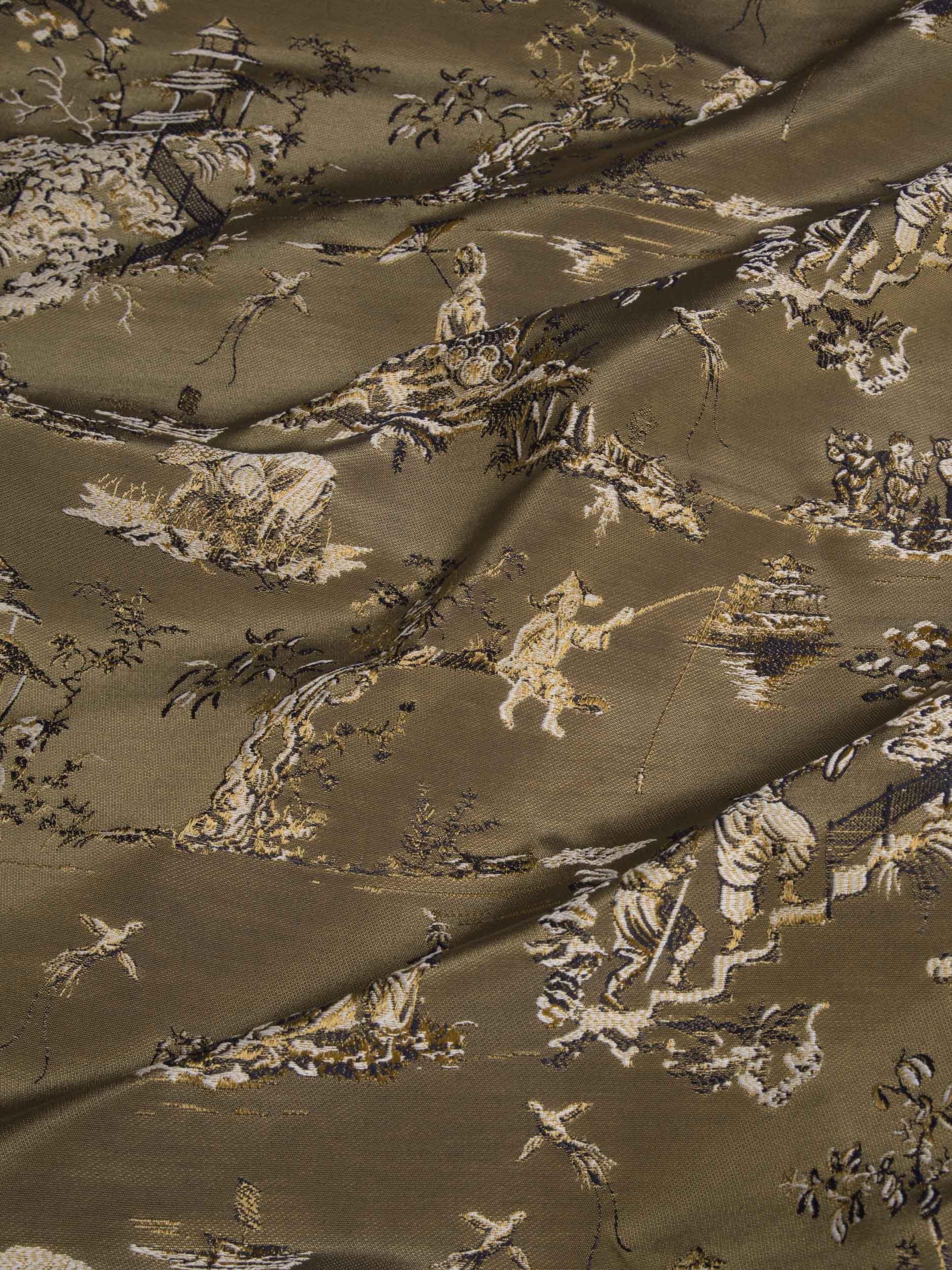 Tolie de Jouy in cotton blend celebrates the tradition. The archive drawing represents an oriental landscape. A precious and contemporary jacquard with mercerized cotton yarns for a full-bodied feel and bright colours. Ideal for seating and upholstery