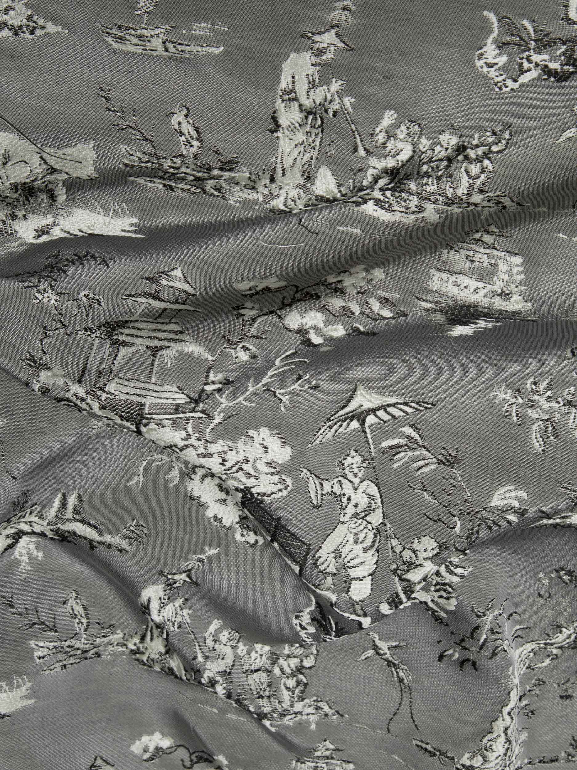 Tolie de Jouy in cotton blend celebrates the tradition. The archive drawing represents an oriental landscape. A precious and contemporary jacquard with mercerized cotton yarns for a full-bodied feel and bright colours. Ideal for seating and upholstery