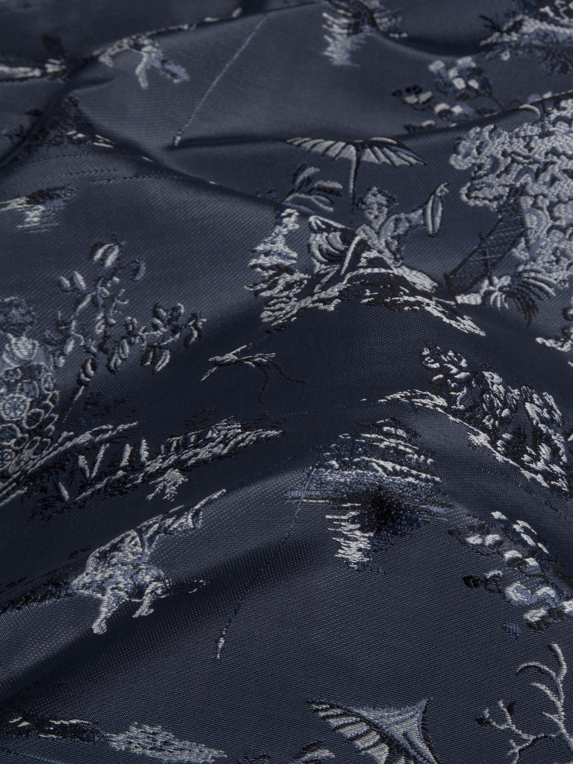 Tolie de Jouy in cotton blend celebrates the tradition. The archive drawing represents an oriental landscape. A precious and contemporary jacquard with mercerized cotton yarns for a full-bodied feel and bright colours. Ideal for seating and upholstery
